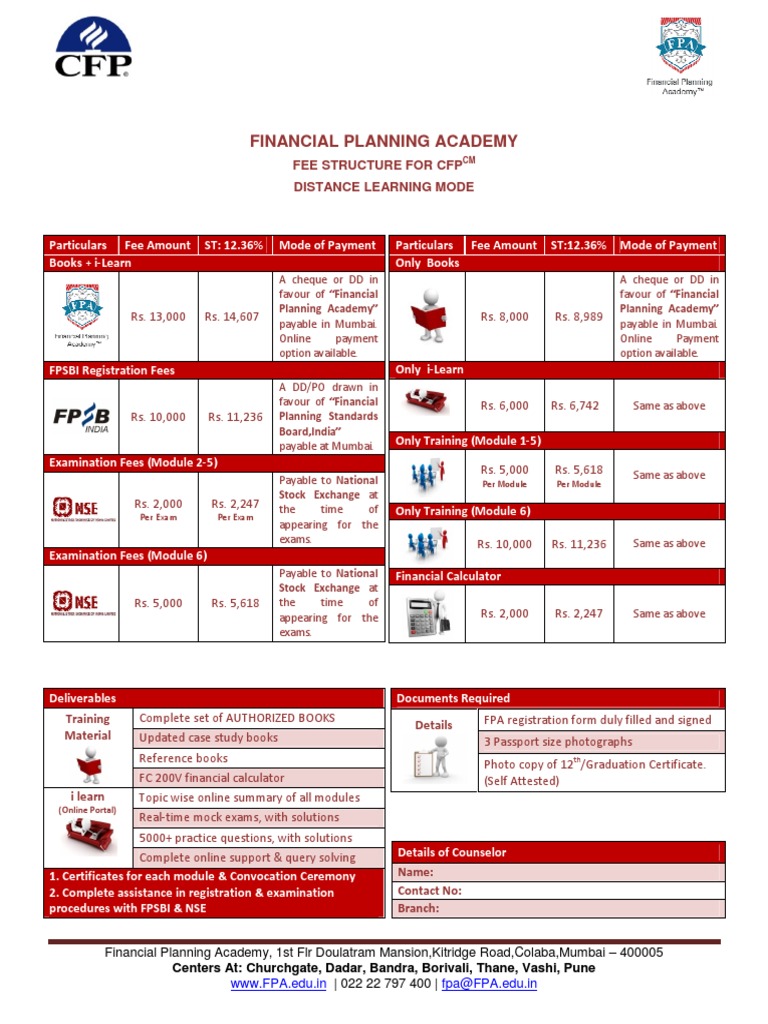 Financial Planning Academy Fee Structure For CFP Distance Learning
