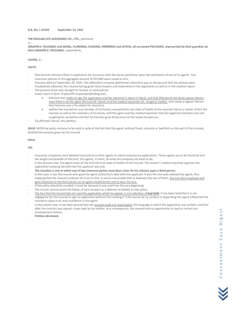Case Digest Concealment PDF Rescission Insurance