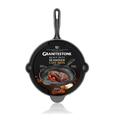 Granitestone Heavy Duty Cast Iron 12" Round Skillet, Color Black
