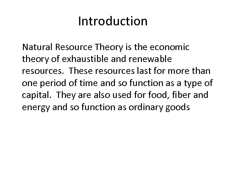 Natural Resource Theory Copyright 1998 by Peter Berck