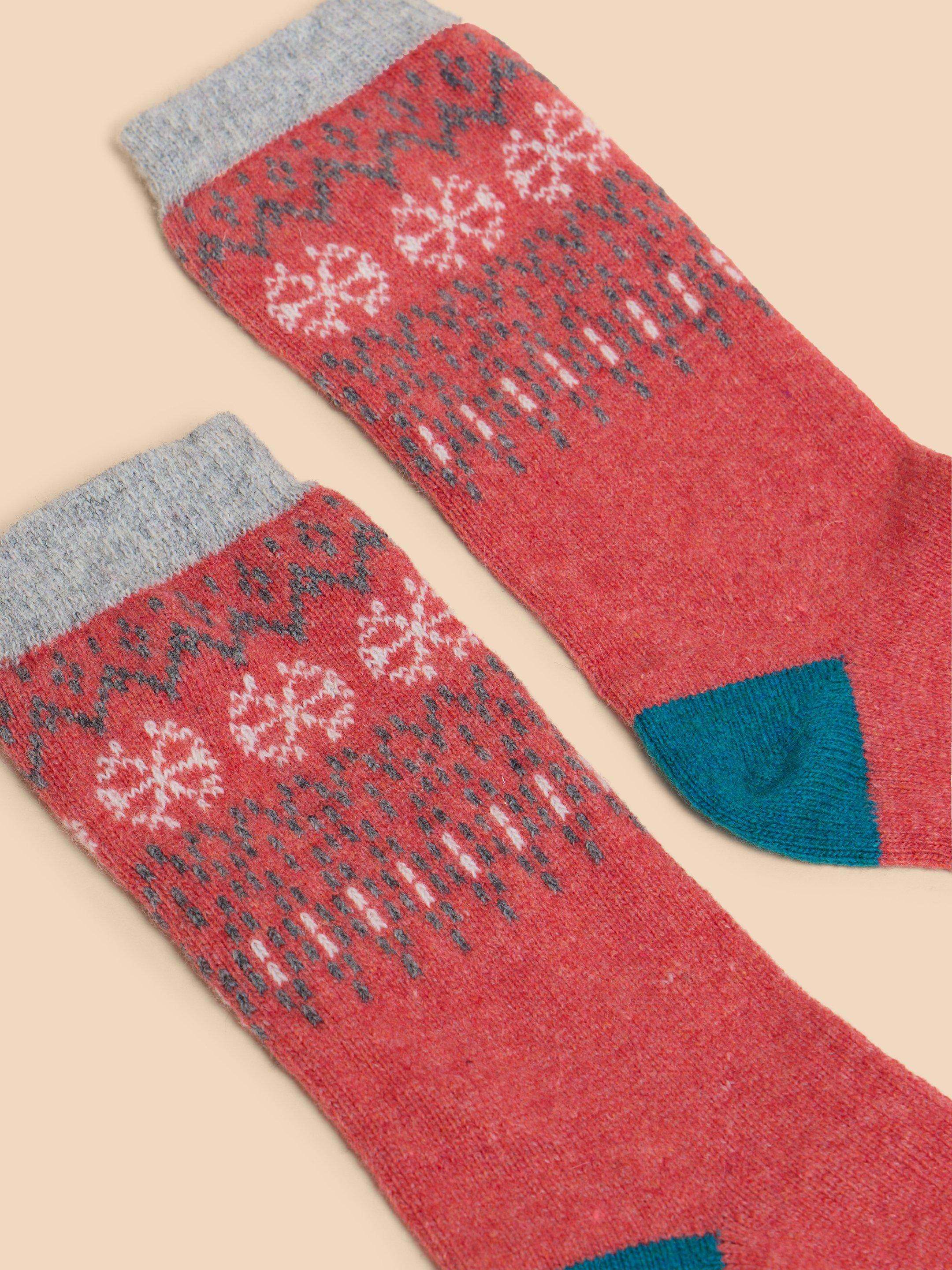 Fairisle Mix Wool Socks in MID PINK White Stuff