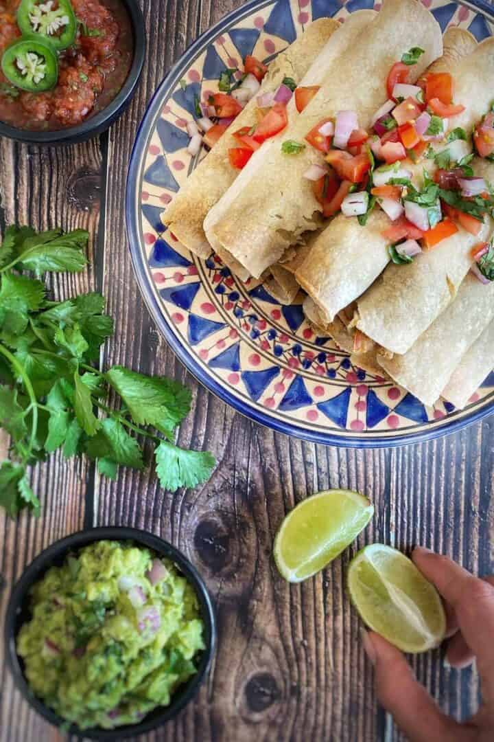 Taquitos • How to make Taquitos Recipe in Oven / Air Fryer {video}• Two Taquitos In Air Fryer To make homemade taquitos in an air fryer, you’ll need a few key ingredients and kitchen tools. Choose from beef, chicken, or cheese. Learn how to make easy and cheesy taquitos in the air fryer with chicken, cream cheese, jalapenos and tortillas. Top with guacamole, salsa, and sour cream for a tasty snack or appetizer recipe. Learn how to make. Taquitos In Air Fryer.