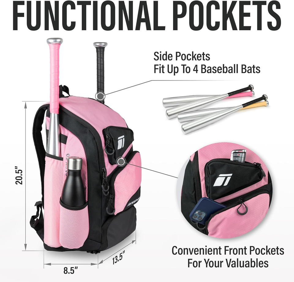 Baseball Bag Backpack for Baseball, Softball, Tball Adults & Youth