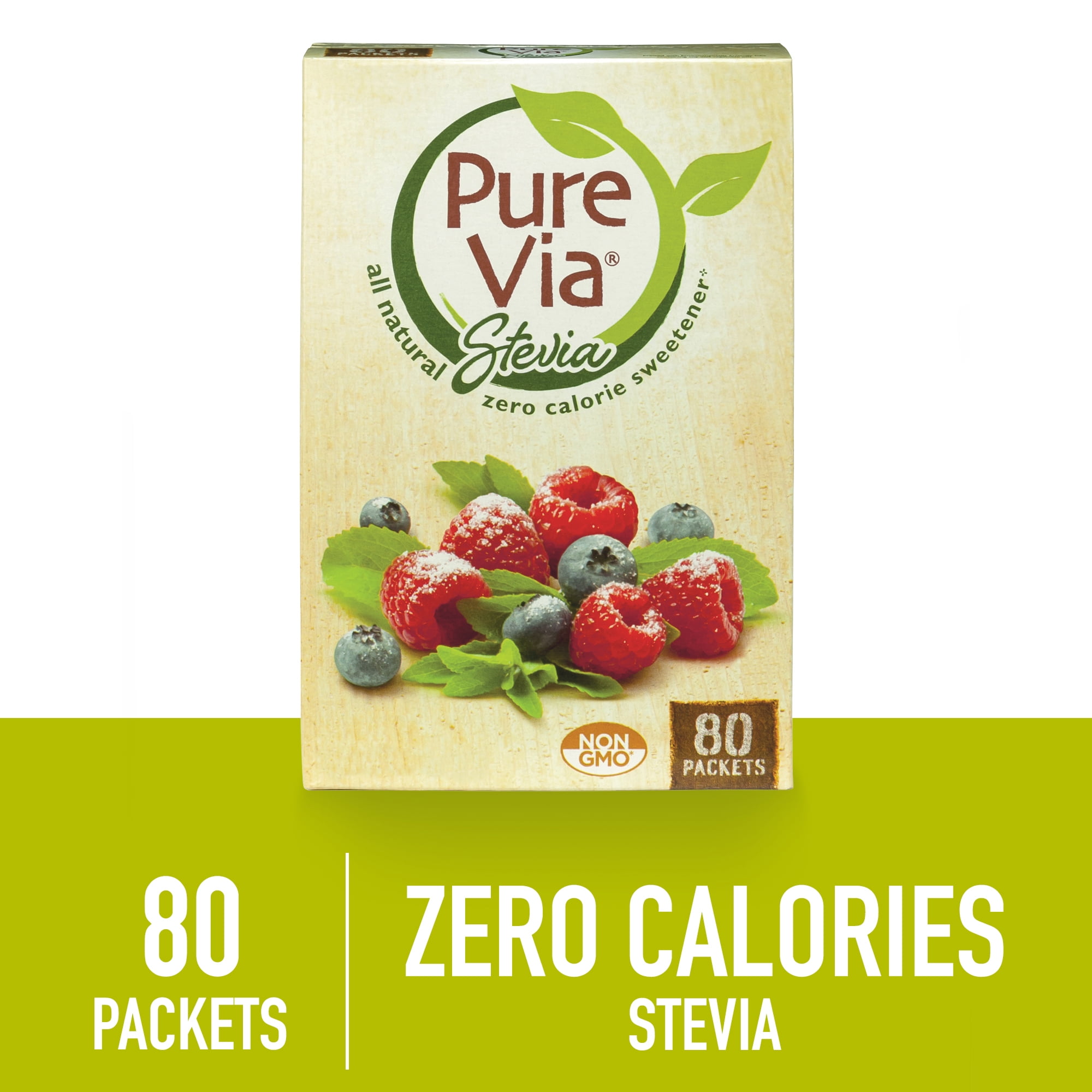 Pure Via All Natural Stevia Sweetener Packets, Zero Calorie, 80 Ct