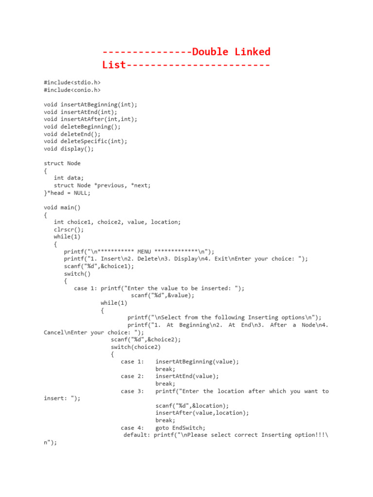 Double Linked List program PDF Programming Paradigms Computer Science