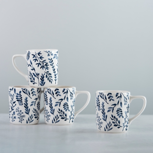 White and Blue Vines Mugs, Set of 4 Kirklands Home