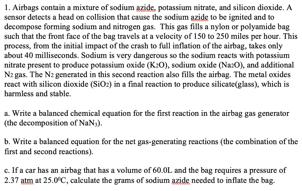 Solved 1. Airbags contain a mixture of sodium azide,
