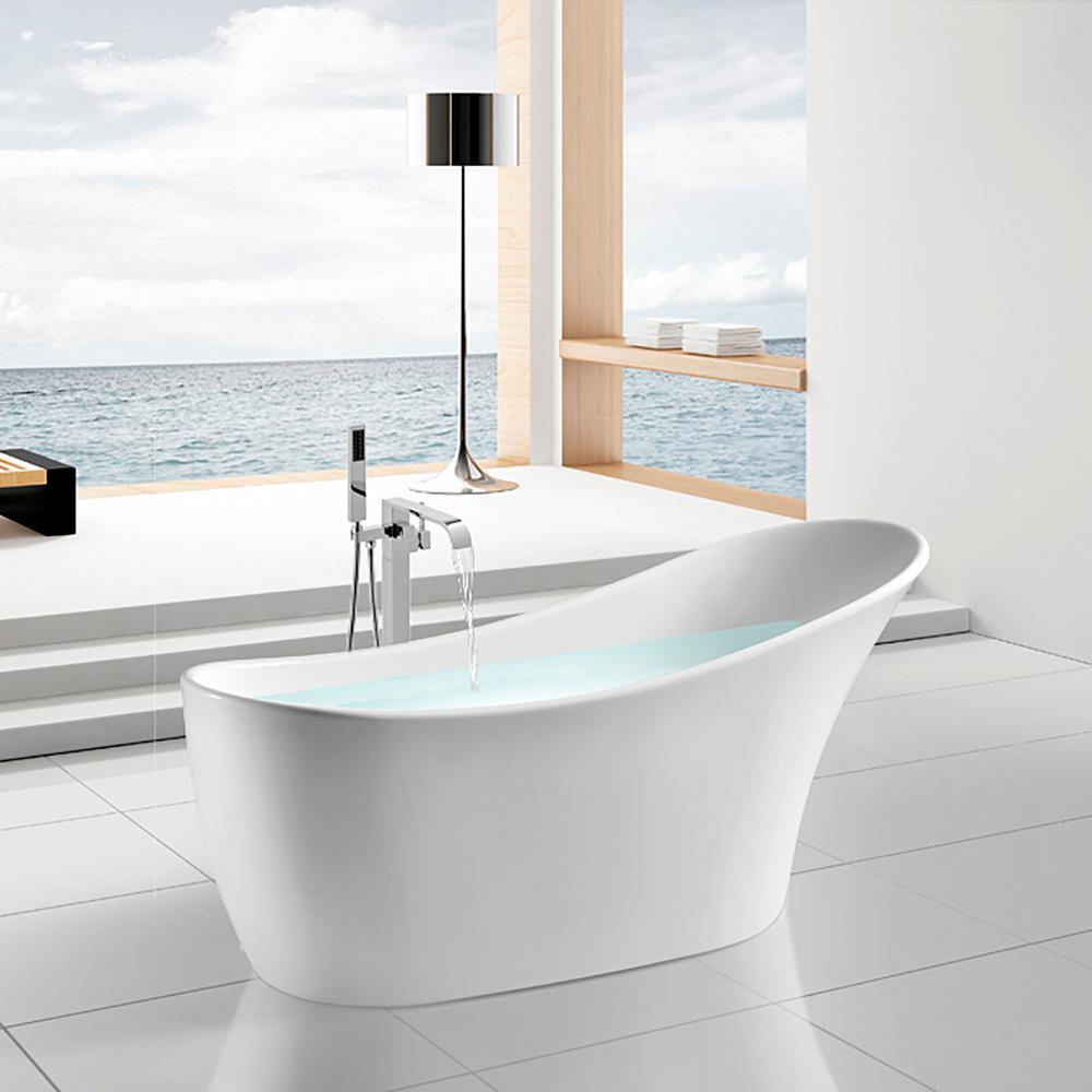 Mokleba 59 in Contemporary Design Flat Bottom Freestanding Bathtub cUPC Flat Bottom Freestanding Tub With Shower enjoy the gentle cascade of a rainfall shower, the flexibility of a handheld spray, and the practicality of a tub spout. freestanding format is the perfect fixture in the center of the bathroom; The freestanding feature provides you with. the acrylic and reinforced fiberglass bathtubs can easily be placed anywhere in the bathroom. Shop wayfair for the. Flat Bottom Freestanding Tub With Shower.