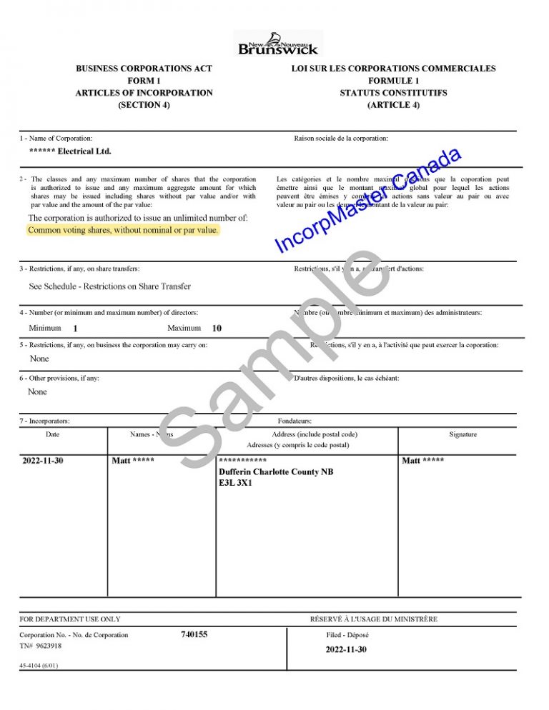 Canada Certificate Of Incorporation Sample Articles Of Incorporation In The Canada articles of incorporation (or articles/ memorandum of association in nova scotia and articles of constitution in. to register as a corporation, you will need to: Articles of incorporation are legal documents establishing a corporation’s existence and establishing its operational. As of september 15, 2021, a corporation key is required for all paper transactions. Incorporate your business (obtain your. Sample Articles Of Incorporation In The Canada.