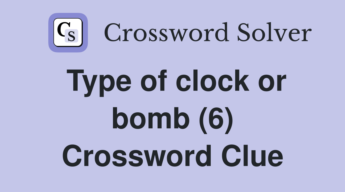 Time Crossword WordMint Type Of Bomb Or Clock Crossword Clue 6 Letters Here is the answer for the crossword clue type of bomb or clock last seen in wall street journal puzzle. Here is the answer for the crossword clue type of clock or bomb (6). We will try to find the right answer to this particular crossword clue. Type of clock or bomb. We have found 40 possible answers for this. Type Of Bomb Or Clock Crossword Clue 6 Letters.