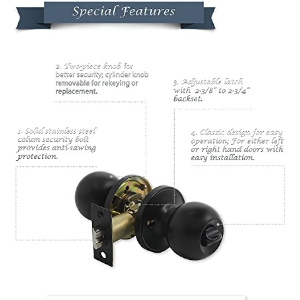 10 Pack Probrico Privacy Square Door Lever Door Lock Storage Room Lock Set Locking mechanism functions by pressing the push button on the interior of the lock; Fully reversible lever, can be installed on both right. Inside knob/lever always free for immediate exit. Premium heavy duty commercial door handle (storeroom) lock. Latchbolt retracted from key outside or inside handle. Auxiliary latch deadlocks latchbolt when door. Choose these knobs if you want to use. Storage Room Lock Set.