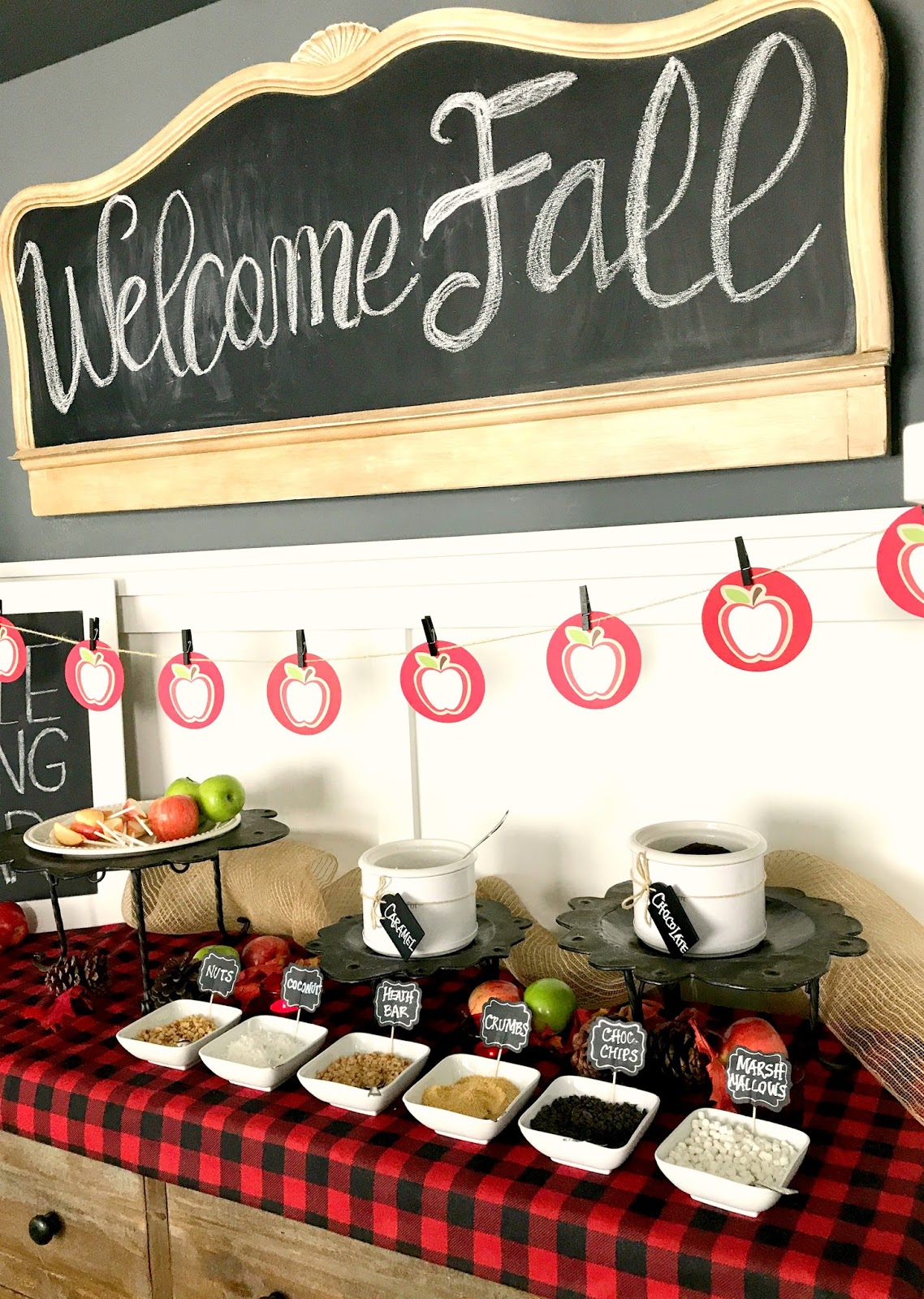 Fall Party Candy Apple Bar Caramel Apple Dipping Bar An apple bar typically consists of sliced apples on a stick dipped in caramel, chocolate, or other various sweet dips, and topped with all kinds of fun candies. Customize your apples with a variety of dips and toppings, plus a trick to keep them. Learn how to make customized caramel apples with a caramel apple dipping bar! π this diy. Caramel Apple Dipping Bar.