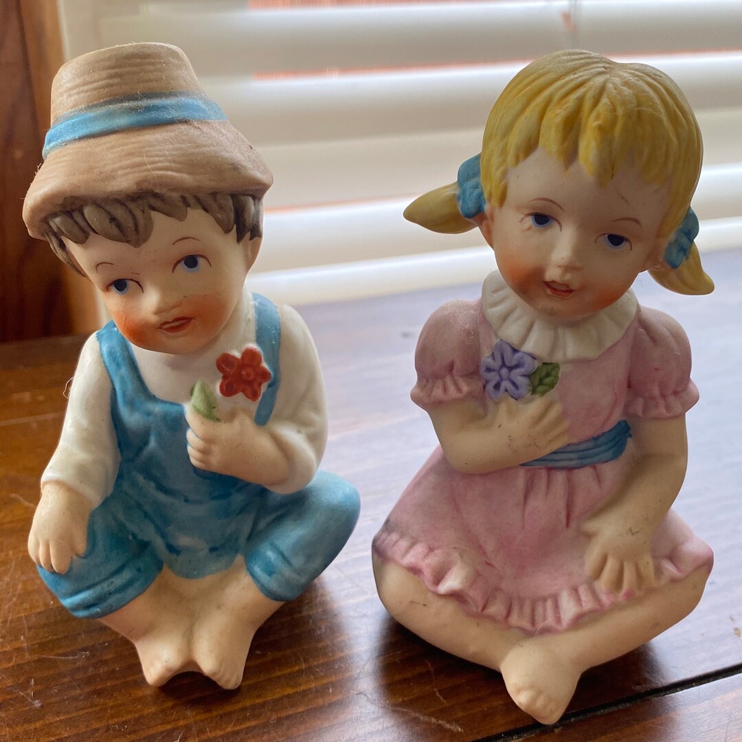 Vintage Boy and Girl Figurines Children With Flowers Pair Etsy