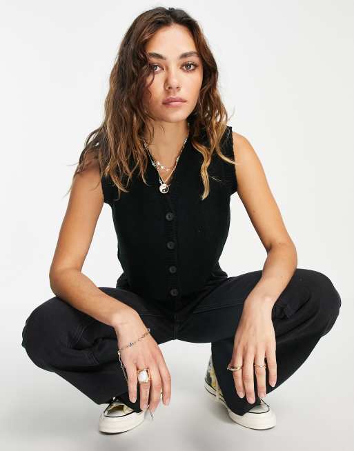 knitted crop button front vest in black ASOS