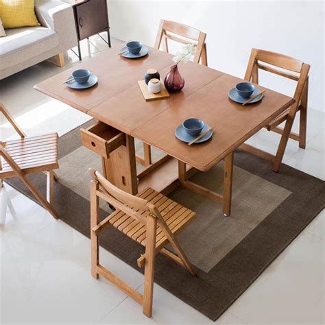 Folding dining table set for 4, dinner table with 4 leather chairs and shelves, space saving foldable dining table with 6 wheels, kitchen table for. Maximize space with folding kitchen and dining tables that seat four comfortably. The drop leaf table easily folds and extends to suit your needs, perfect for small spaces or apartments.
