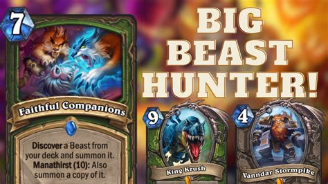 Big Beast Hunter - Great at all levels and a strong recommendation for players trying to get legend for the first time. This deck is fusing the early tempo features of the hunter secrets with the overwhelming power of the big endgame beasts. Find the best decks all top ranked players are using. Hearthstone database, deck builder, news, and more! Big beast hunter is.