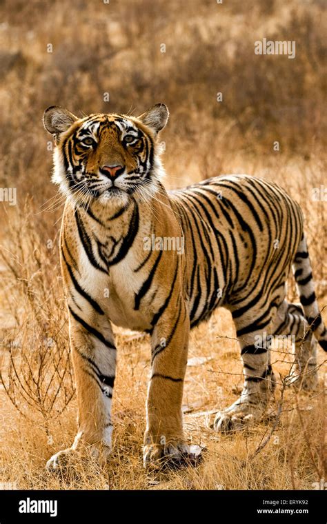 Three tigers moving on the dry grasses of the dry deciduous forest of from www.alamy.com