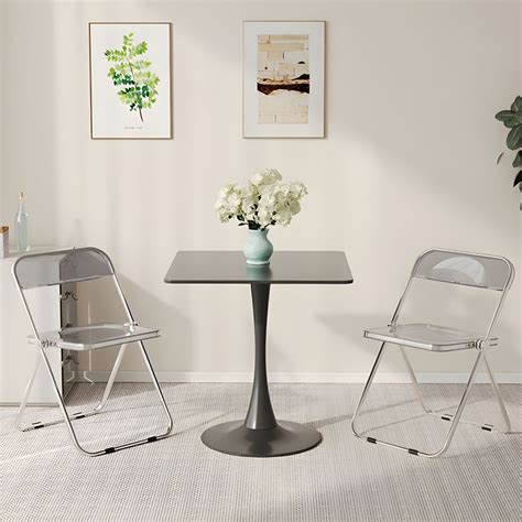 36 square glass dining table, modern clear kitchen table for 4 with tempered glass top & silver stainless steel legs, small glass coffee table for. This table measures 36 inches square and 30 inches high when unfolded, and 36 x 36 x 4 inches when folded, making it easy to fit in any area of any. Price and other details may vary based on product size and color.