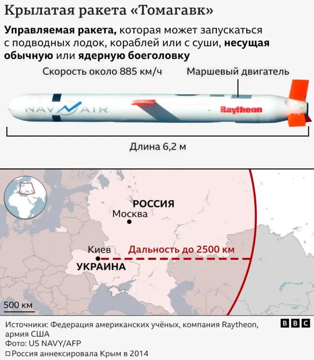Тогда же возможную передачу Киеву Tomahawk прокомментировал Путин. Он заявил, что «Томагавки» — мощное оружие, но их поставки не изменят ситуацию на поле боя и только приведут к разрушению складывающихся отношений России с США — «во всяком случае, наметившейся позитивной тенденции в этих отношениях».