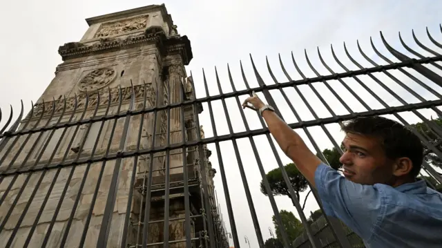 Администрация археологического парка Колизей подтвердила, что в результате инцидента небольшая часть арки была повреждена.