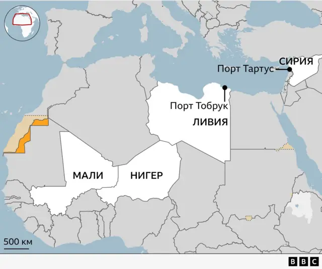 Специализирующийся на малийских новостях канал War News утверждал, что тогда, в декабре 2024 года, российские корабли вывезли из Сирии в Тобрук и часть российской военной техники, чтобы она не досталась бойцам группировки «Хайят Тахрир-аш-Шам». Танки Т-72, различная бронетехника вроде БТР-82 и БМП-3, системы реактивного залпового огня БМ-21 «Град» сначала прибыли в ливийский Тобрук, а оттуда через территорию Нигера были доставлены в Мали, где должны были помочь «Африканскому корпусу» удержать власть в этой стране для генерала Гоита.