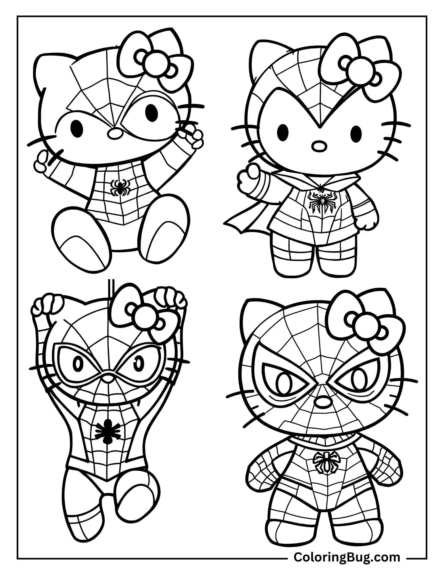 Download and print these Spider-Man Hello Kitty coloring pages for free. Printable Spider-Man Hello Kitty coloring pages are a fun way for kids of all ages to develop creativity, focus, motor skills and color recognition.
