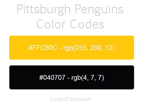 Penguins Color Codes . These hues are not just aesthetically pleasing but deeply symbolic, representing the strength, unity, and tradition of pittsburgh sports teams. Additionally, we provide both png and jpg files.