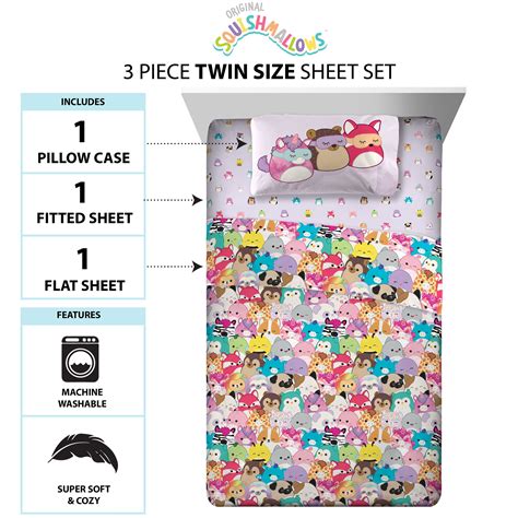 This squishmallows sheet set brings the wonderfully cozy squishmallows characters into. Check the product descriptions for specific size. Our collection includes bedding and sheet sets for various bed sizes, from cribs to twin and full beds. Immerse yourself in the world of squishmallows with this fun sheet set and bring some.