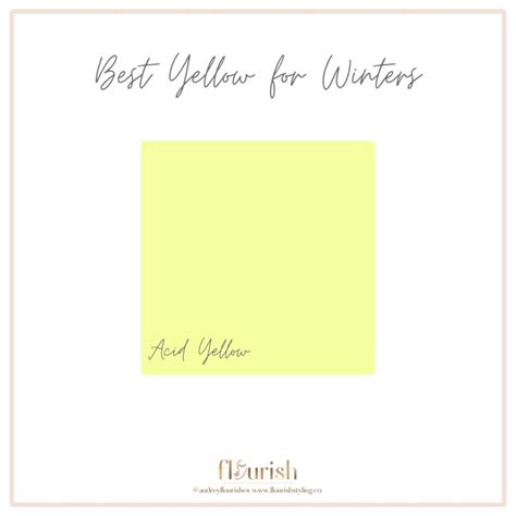 Winter Yellow Colour - Winters have in their palette a bold, acid yellow. Still icy in overall complexion, you are probably a cool winter if warm colors bring out your complexion's yellow tones. This color actually looks like it is borderline green. Dive into the possibilities of yellow for winter color types. Discover beautiful yellow winter color palettes on color hunt.