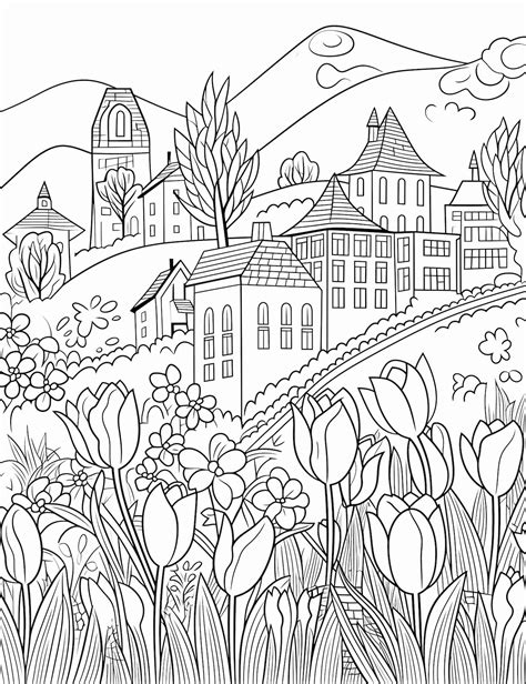Spring Scenery Coloring Page . Download and print these spring landscape coloring pages for free. These spring coloring pages are perfect for kids of all ages, offering a mix.