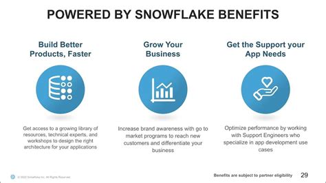 Snowflake Benefits - Let’s dive into the capabilities that make it possible. Snowflake's key features include scalability, improved collaboration through data sharing, quick data cloning, and easy integration with various bi, etl, and data visualization. Its architecture allows data specialists to not only create data warehouses but also cloud data. To be more specific it’s the first cloud built data platform. Eligible employees.