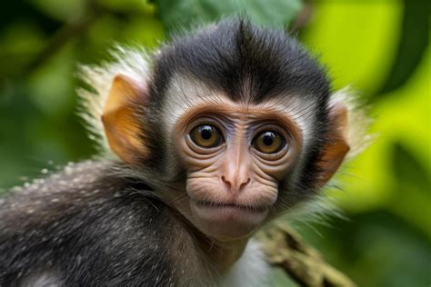 Cute Mouse Monkey With Ear Shaped Eyes Looking Out At The Blue Sky