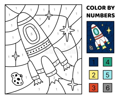 Space Rocket Color By Numbers Coloring Stock Vector (Royalty Free