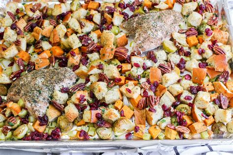 Turkey Sheet Pan Recipe - This turkey sheet pan dinner with roasted veggies and tart cranberries makes a fabulous sunday supper or an easy thanksgiving alternative. Everything cooks on one sheet pan in under an hour. Cooking a smaller dinner for thanksgiving? You will love this sheet pan. Combine the apples, onions, lemons, sage sprigs and chicken broth on a rimmed baking sheet.