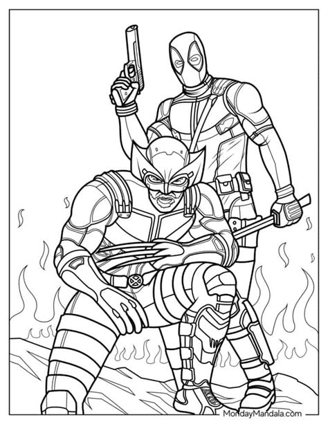 Deadpool Wolverine Coloring Sheet . Deadpool jest świadomy bycia (anty)bohaterem komiksowym i bardzo często łamie czwartą ścianę, co najczęściej jest humorystycznie wykorzystywane. Niebawem uwalnia swoje alter ego i rozpoczyna polowanie.