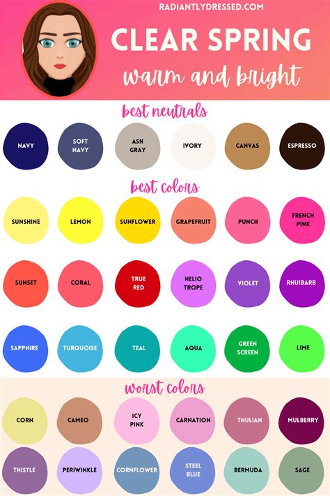 Colors For Clear Spring - They commonly have very bright and. Clear spring types can borrow from light and warm spring, as long as the colors are clear. This seasonal color analysis guides you through all. Learn about hex code, rgb, hsb, hsl, and how to create your own palettes. The ‘clear spring color palettes’ collection embodies the freshness and vibrancy of the spring season.