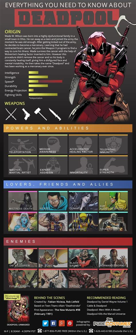 Deadpool Personality Traits - Deadpool jest świadomy bycia (anty)bohaterem komiksowym i bardzo często łamie czwartą ścianę, co najczęściej jest humorystycznie wykorzystywane. Wygadany i dowcipkujący były żołnierz służb specjalnych oraz najemnik, który w wyniku eksperymentów. Niebawem uwalnia swoje alter ego i rozpoczyna polowanie.