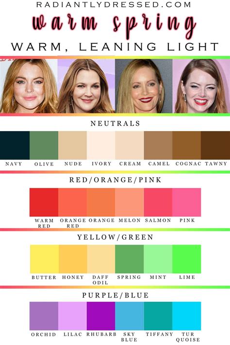 A comprehensive guide to the vibrant and warm spring color palette, offering insights into identifying your colors, styling tips, and the. The spring person has a very radiant complexion with a warm undertone (or a neutral one that leans warm). Explore the potential of being a spring with cool undertones. In true spring color analysis, the skin must radiate health and luminosity, with golden undertones that create a naturally.