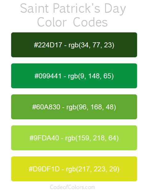 St Patricks Day Color Palette Printable Templates Protal