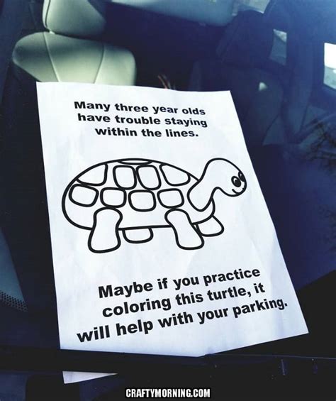 Turtle Colouring Parking - Slow down and enjoy some creative fun with turtle coloring pages! I forgot to take it. My dad found this on a car one day and i thought it was funny! The behold the marvelous turtle parking coloring page is a coloring page that features an adorable turtle trying to park a car. Discover recipes, home ideas, style inspiration and.
