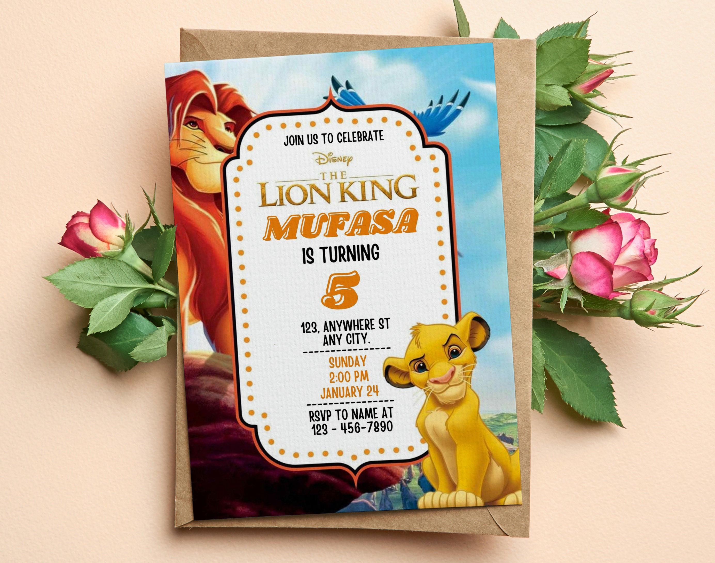 Editable Lion King Birthday Invitation Template, Printable Digital