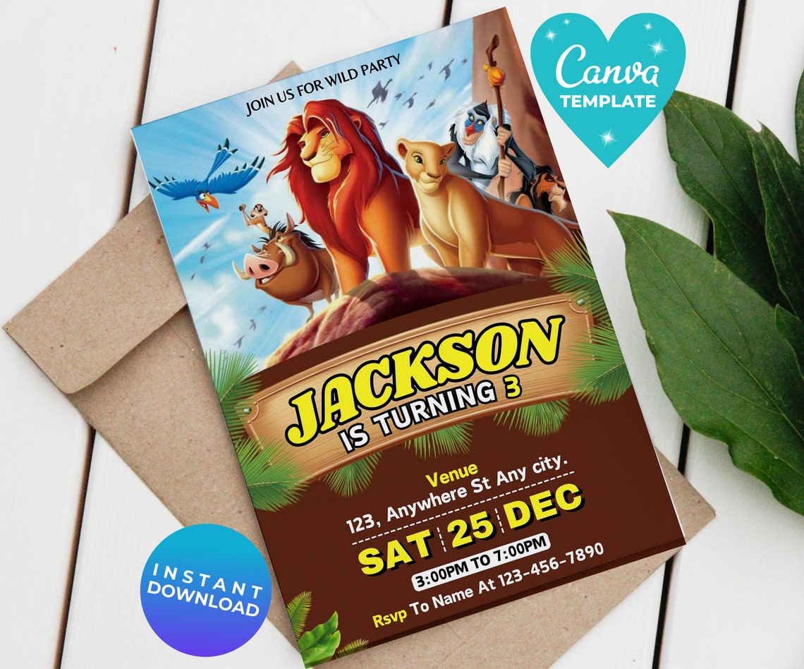 Editable Lion King Birthday Invitation Template, Printable Digital from www.pinterest.com