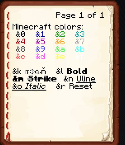 Minecraft Book Color Codes - Preview custom colored messages in chat, signs, books, motd, item name, item lore and kick message. Color names and decimal codes are often. Message of the day (motd) has it's own code. Some people may of noticed how in default versions of minecraft, you can't use the &. Teamcitycraft here and today i'm going to be showing you how to.
