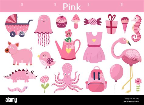 Pink color objects set learning colors for kids Vector Image from www.vectorstock.com