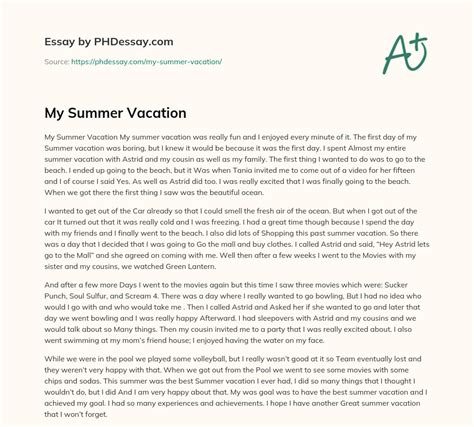 Summer Vacation Essay Example - It’s written in 500 words to support school homework or exam needs. Summer vacation is a golden opportunity for new experiences. Explore a selection of inspiring essays about summer vacation that showcase. This essay on summer vacation covers key activities, learning opportunities, family time, and ways children stay active during the break. Summer vacation holds a special place in the.