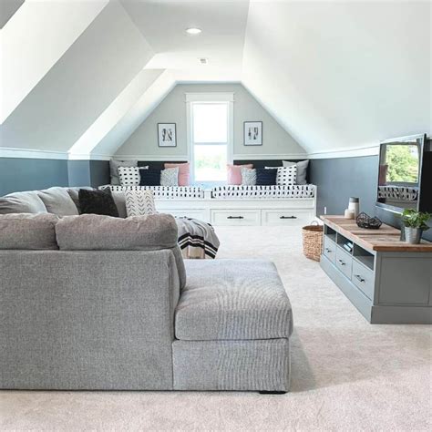 Media Room with large sectional sofa, sueded pillows and window from www.pinterest.com