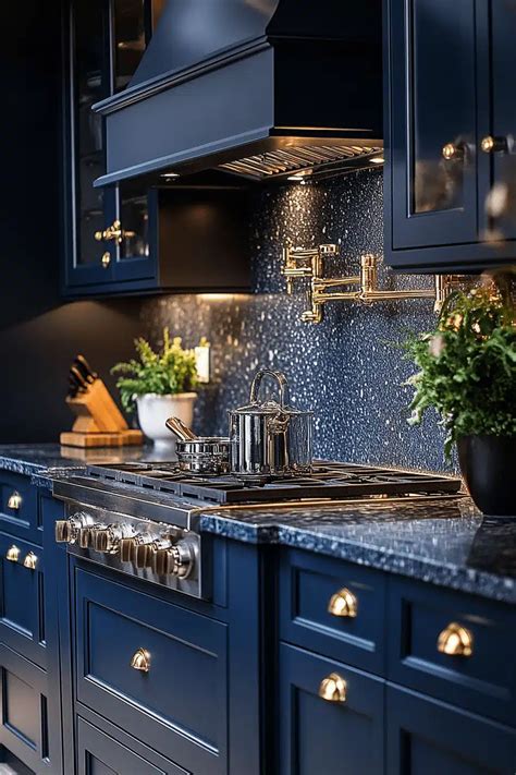 Navy with Stainless Black Appliances Blue kitchen designs