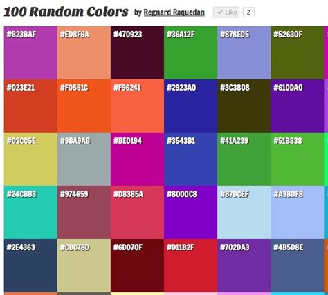Random Color List - Perfect for design, ui ideas, themes, and creativity. Color generator is an online tool to generate a random color or a set of random colors in hex, rgb (a) or hsl color format. You can use these named colors for css or photo editing. You can generate a list up to 100 random colors at once. Use the random color.