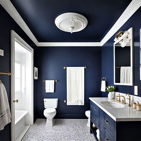 Navy Blue Bathroom Ceiling - A navy blue ceiling can create a unique and captivating bathroom space. Apply matte navy finishes on the vanities, walls, or ceilings to give a sleek, contemporary, and elegant look to your modern navy blue bathroom design. This unconventional choice draws the eye upward, giving the illusion of higher ceilings. Imagine stepping into a bathroom. Discover how these navy bathroom.