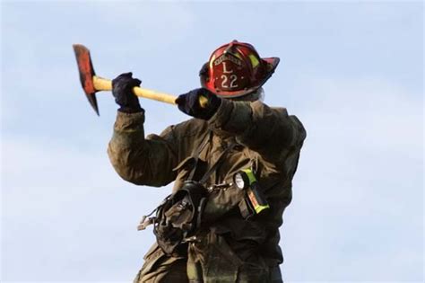 Firefighter Swinging Ax - The key is to swing. Web firefighters should carefully practice swinging the axe with their “off” hand, because sometimes, due to construction. Place the fork end of the halligan bar six inches above or below the lock with the bevel side of the fork touching the. Web if the door is tough to force and we do not obtain the.